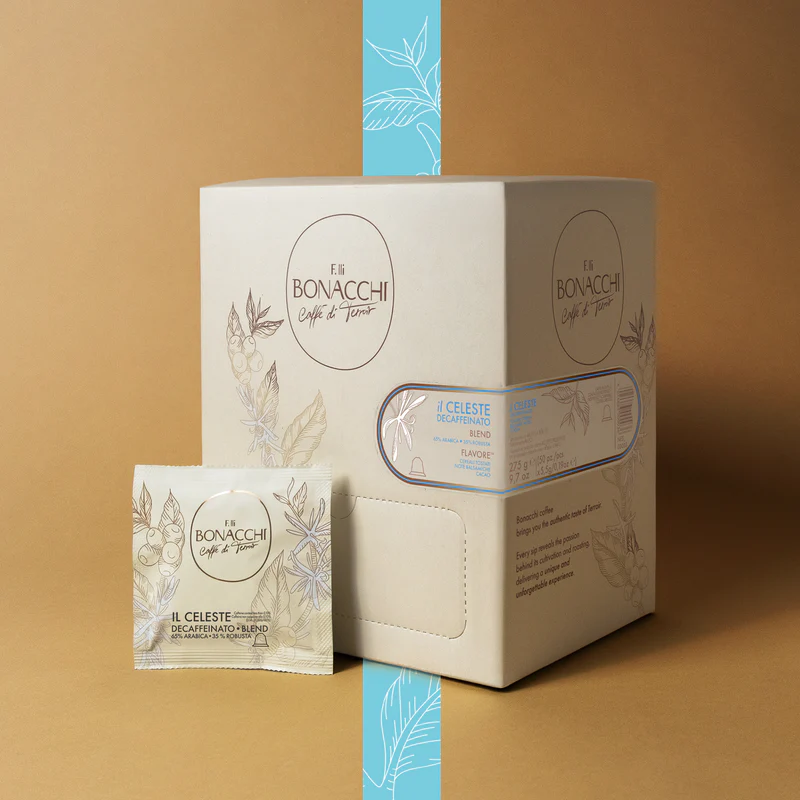 Az Il Celeste koffeinmentes kávé kellemesen testes és bársonyos koffeinmentes mely 65% Arabica és 35% Robusta kávészemekből készült.